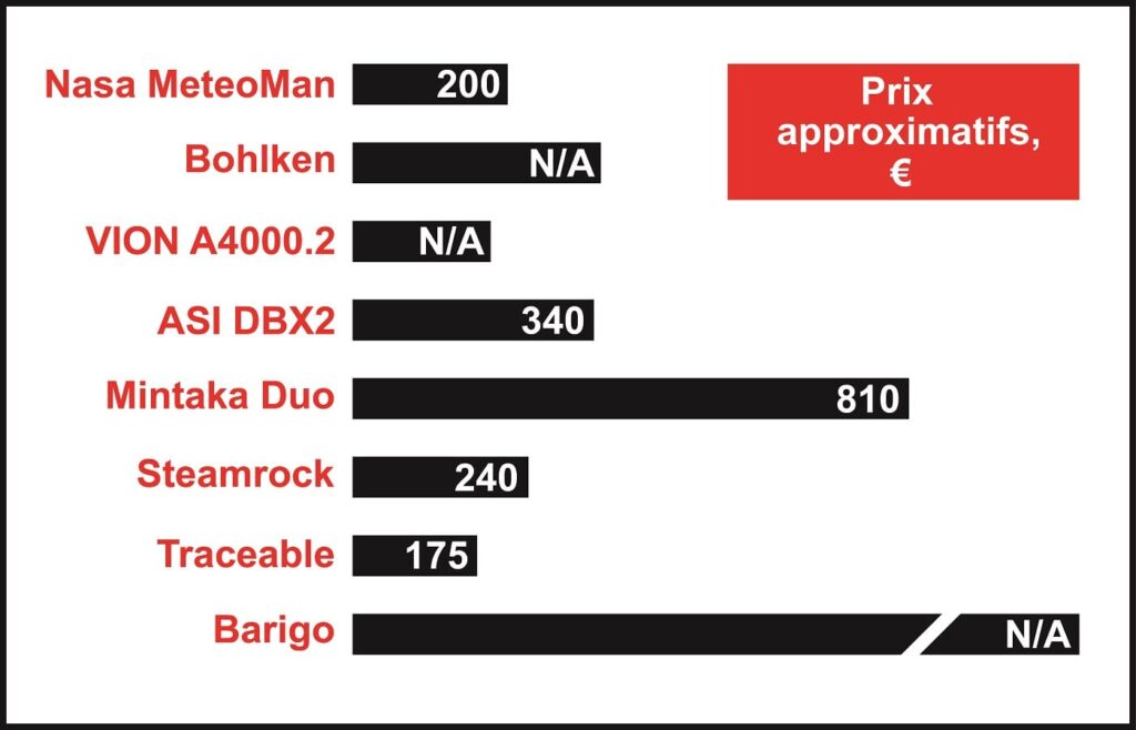 Le baromètre numérique Barigo est plus de deux fois plus cher que tout autre baromètre numérique sur le marché. Il est fabriqué par un producteur renommé de barographes mécaniques en Allemagne. Il est proposé dans différents boîtiers élégants, notamment en acajou et en aluminium brossé.