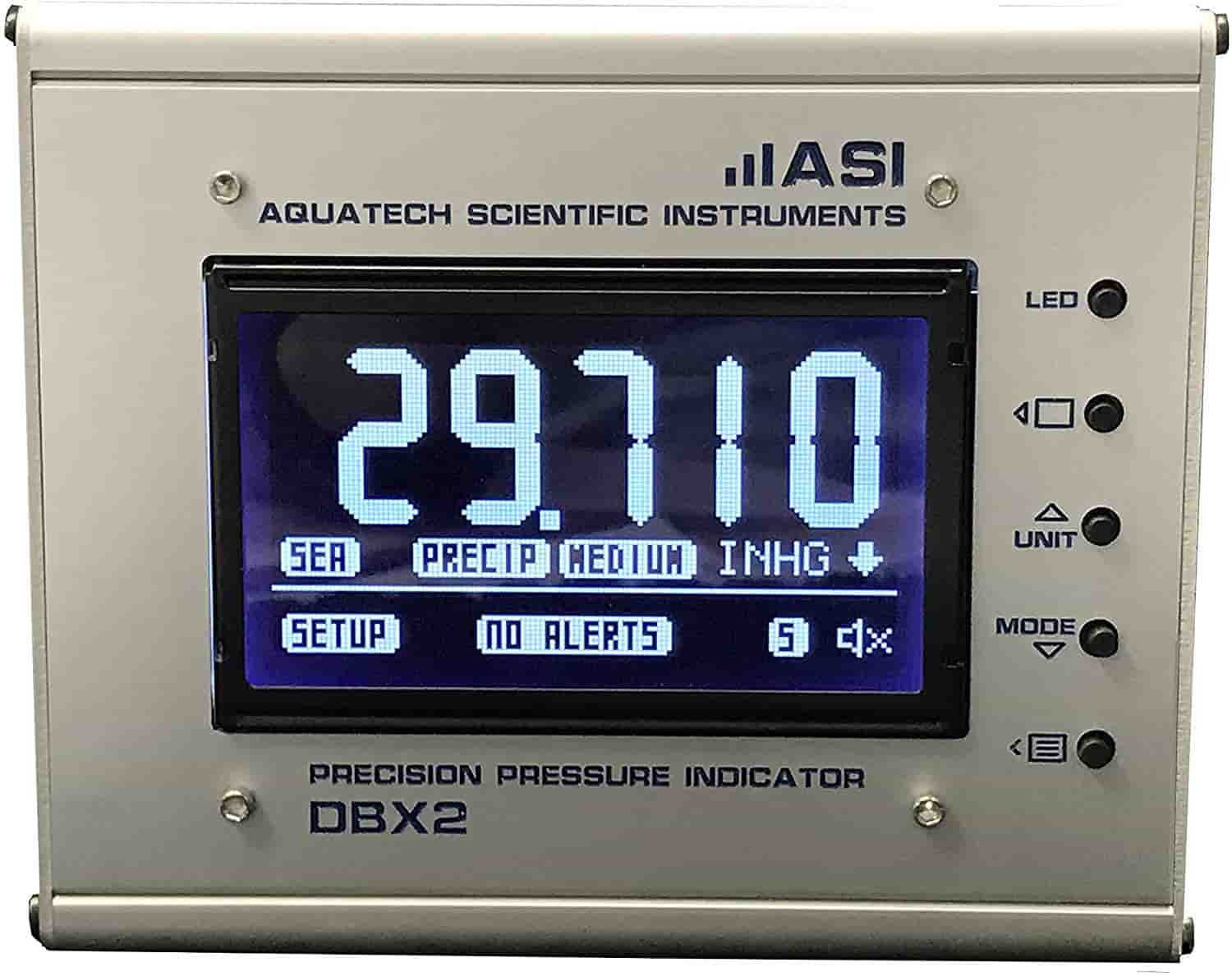 Le baromètre de précision DBX2 est un appareil de deuxième génération produit par Aquatech Science Instruments aux États‑Unis. Ce barographe électronique est un dispositif légèrement plus cher dans la catégorie des prix modérés. Son boîtier est en aluminium anodisé et disponible en deux couleurs.